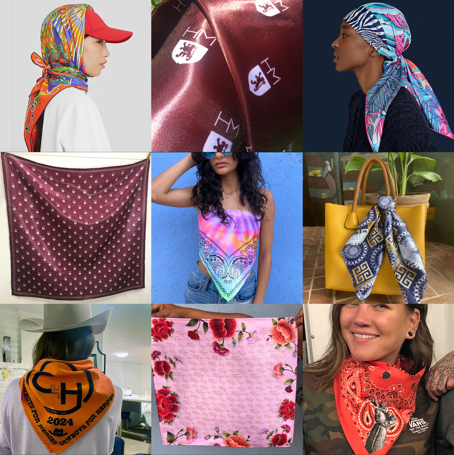 Unleash your creativity with custom printed scarves and bandanas.